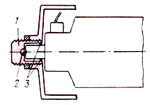 Усовершенствование стартера: 1 - втулка с контргайкой; 2 -шарик; 3 - резиновое кольцо