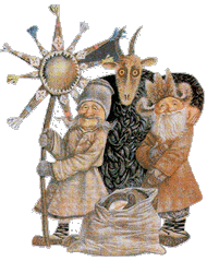 Днем со звездой на шесте ходили по домам, объединившись небольшими группами, и пели “колядки” - короткие рождественские и новогодние песенки. Сначала трепетными голосами запевали дети, затем подхватывали взрослые: “Я маленький хлопчик, принесу Богу снопчик, Христа величаю, а вас с праздником поздравляю!”. В благодарность за эти искренние и трогательные пожелания прослезившиеся хозяева дома одаривали “исполнителей” специально приготовленными пряниками, пирогами или прочей снедью которая так и называлась “коляда” То-то было раздолье для нищих и убогих.