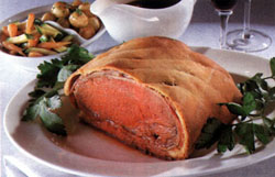 Раньше говяжье филе в тесте у многих было фирменным блюдом. Мясо тогда стоило гораздо дешевле, да и содержание холестерина в пропитанном маслом хрустящем слоеном тесте, жареных грибах и говядине почти не беспокоило людей. Сейчас редко готовят это блюдо, но все же возвращаются к нему, когда хочется чего-нибудь необычного и вкусного. И оно и по сей день остается одним из признанных шедевров мировой гастрономии. |