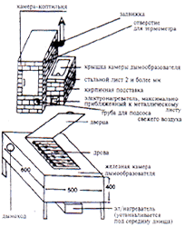 из глины по периметру. На рисунке изображен общий вид коптильни, подтверждающий