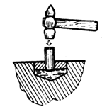 Извлечь втулку из глухого отверстия - задача сложная. Но решаемая (см. рис.) Залить в отверстие густое машинное масло, плотно вставить во втулку стальной стержень и ахнуть по нему молотком. Вот и все. Энергия удара, передаваясь через масло, вытолкнет втулку. |