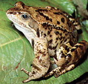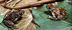 с темно-бурой спинкой, и зеленая, со светло-серой пятнистой спинкой жаба.