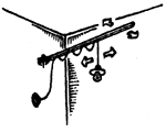 ...направляющий рельс от старого карниза для штор. Лучше прикрепить его к стене в гараже или мастерской на шарнирном кронштейне и получится удобная опора для передвижной лампы. Лампа и шнур двигаются по направляющей на скользящих крючках. |