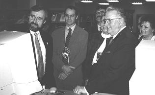 On Saturday, 16th November 1996, it was an honour and pleasure to welcome at the WAICENT demonstration site His Excellency, President of the Slovak Republic, Michal Kovac. Mr. Kovac was interested in FAO information accessible via Internet, Summit topicals and experience of the Slovak FAO staff member with her work in the D. Lubin Memorial Library. Mr. President and the Slovak delegation got acquainted with the FAO homepage on the World Wide Web, they were briefed on the FAOINFO and FAOSTAT databases, and requested searches for population and other FAOSTAT data on Slovakia were demonstrated for them.