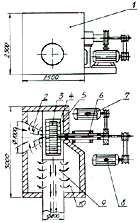 | Рис. 3. Схема размещения оборудования сенохранилища: 1 - нагревательная установка; 2 - транспортер ТПЭ-10А; 3 - брезентовый рукав; 4 - решетчатый желоб |