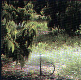 Существует несколько способов полива. Простейший - с помощью лейки. Посеянные семена и всходы надо поливать через насадки с мелкими отверстиями. При поливе из шланга велика опасность повреждения растений, размыва почвы и обнажения корней. Если поливаете из шланга, его надо держать так, чтобы вода текла по междурядью. При использовании шланга с насадкой-распылителем следите, чтобы не было тяжелых капель, падающих на почву и сильно ее уплотняющих. Наряду с поливом из лейки применяют смачивание почвы из бутылок, как делает огородник П.П. Соянко. Берет пустую полулитровую бутылку, втыкает вертикально в землю на глубину 10 см. Затем вынимает, наполняет водой, быстро переворачивает и вставляет в подготовленное гнездо. После этого бутылку приподнимает, встряхивает, чтобы вылетела земляная пробка и плавно опускает в гнездо. Вода из бутылки медленно просачивается в почву в течение целой недели. На грядку длиной 5 м он ставит 15 бутылок. Можно, используя естественные углубления на участке, устроить про-стейшие водоемы. Они не только декоративны, но и смягчают микроклимат, увлажняя воздух. Эту же воду, обогащенную кислородом, подогретую солнцем, используют для полива.
