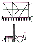 На раме через 1000 мм приварены заостренные штыри из труб длиной 2000 мм. Справа и слева на расстоянии 1000 мм от краев при помощи шкворней диаметром 45 мм крепятся боковые рамы. Длина их 5000 мм и высота 1500 мм.