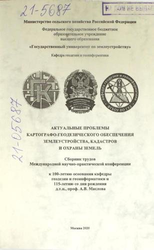 Чистякова Е. А., Актуальные проблемы картографо-геодезического обеспечения землеустройства, кадастров и охраны земель: сборник трудов Международной научно-практической конференции к 100-летию основания кафедры геодезии и геоинформатики и 115-летию со дня рождения д. т. н., проф. А. В. Маслова/ составители: Е. А. Чистякова, В. А. Костеша — 2020 г.