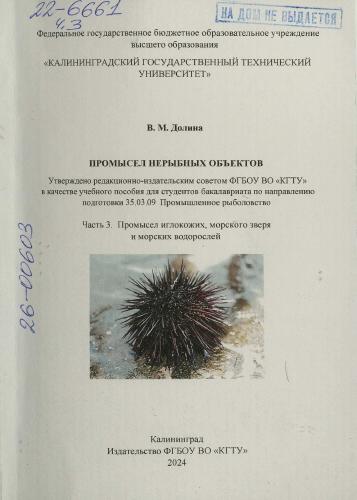 Долина В. М., Промысел нерыбных объектов . Ч. 3: Промысел иглокожих, морского зверя и морских водорослей — 2024 г.