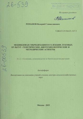 Романов В. С., Межвидовая гибридизация в селекции луковых культур - генетические, биотехнологические и методические аспекты: автореферат диссертации — 2025 г.