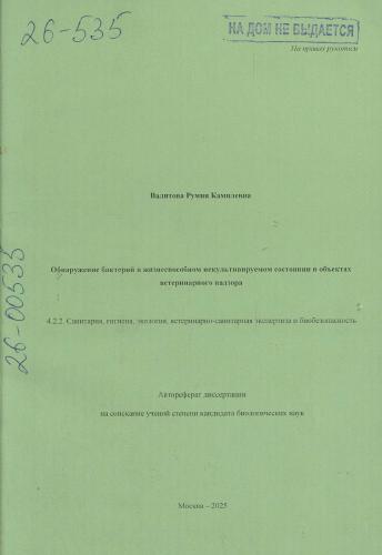 Валитова Р. К., Обнаружение бактерий в жизнеспособном некультивируемом состоянии в объектах ветеринарного надзора: автореферат диссертации — 2025 г.