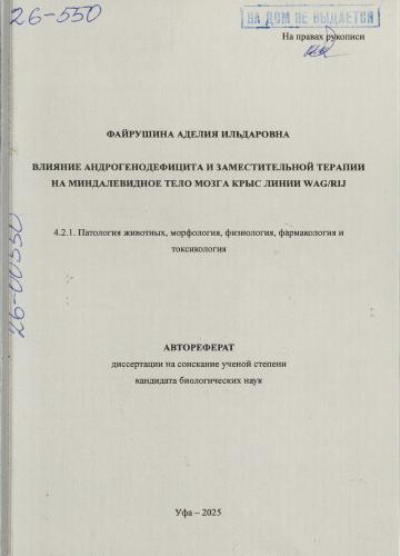 Файрушина А. И., Влияние андрогенодефицита и заместительной терапии на миндалевидное тело мозга крыс линии WAG/Rij: автореферат диссертации — 2025 г.