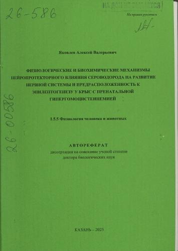 Яковлев А. В., Физиологические и биохимические механизмы нейропротекторного влияния сероводорода на развитие нервной системы и предрасположенность к эпилептогенезу у крыс с пренатальной гипергомоцистеинемией: автореферат диссертации — 2025 г.
