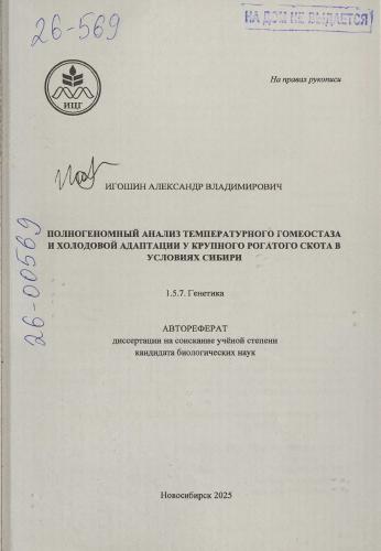 Игошин А. В., Полногеномный анализ температурного гомеостаза и холодовой адаптации у крупного рогатого скота в условиях Сибири: автореферат диссертации — 2025 г.