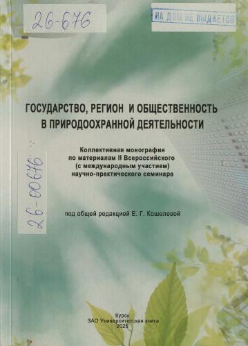 Государство, регион и общественность в природоохранной деятельности: коллективная монография по материалам II Всероссийского (с международным участием) научно-практического семинара — 2025 г.