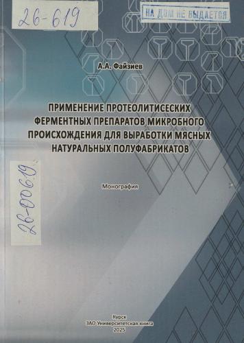 Файзиев А. А., Применение протеолитических ферментных препаратов микробного происхождения для выработки мясных натуральных полуфабрикатов: монография — 2025 г.