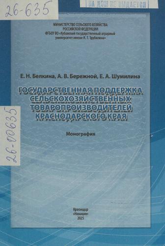 Белкина Е. Н., Государственная поддержка сельскохозяйственных товаропроизводителей Краснодарского края: монография — 2025 г.