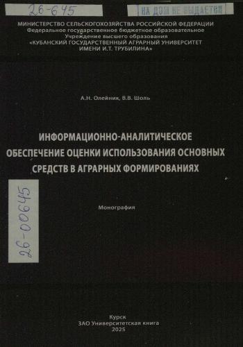 Олейник А. Н., Информационно-аналитическое обеспечение оценки использования основных средств в аграрных формированиях: монография — 2025 г.