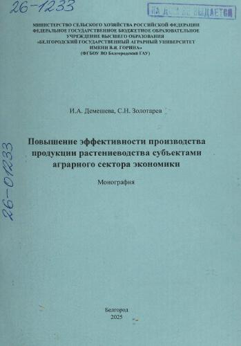 Демешева И. А., Повышение эффективности производства продукции растениеводства субъектами аграрного сектора экономики: монография — 2025 г.