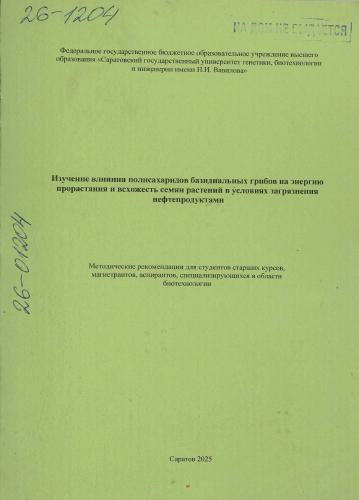 Изучение влияния полисахаридов базидиальных грибов на энергию прорастания и всхожесть семян растений в условиях загрязнения нефтепродуктами: методические рекомендации для студентов старших курсов, магистрантов, аспирантов, специализирующихся в области биотехнологии — 2025 г.