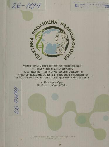 Генетика. Эволюция. Радиоэкология: материалы Всероссийской конференции с международным участием, посвященной 125-летию со дня рождения Николая Владимировича Тимофеева-Ресовского и 70-летию созданной им лаборатории биофизики, г. Екатеринбург, 15-19 сентября 2025 г. — 2025 г.