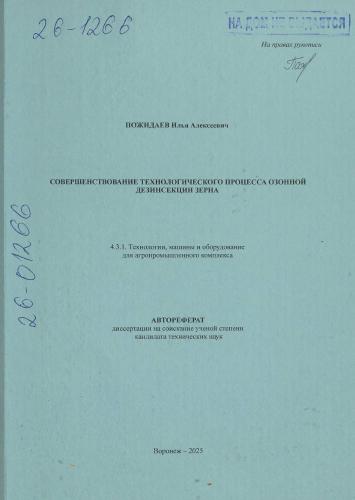 Головин А. Д., Совершенствование технологического процесса хранения семян колосовых зерновых культур в регулируемой озоновоздушной среде: автореферат диссертации — 2025 г.