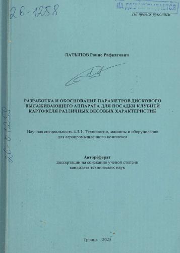 Кочергин А. С., Совершенствование процесса высева семян кукурузы дозирующим модулем сеялки избыточного давления: автореферат диссертации — 2025 г.