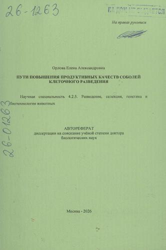 Орлова Е. А., Пути повышения продуктивных качеств соболей клеточного разведения: автореферат диссертации — 2026 г.
