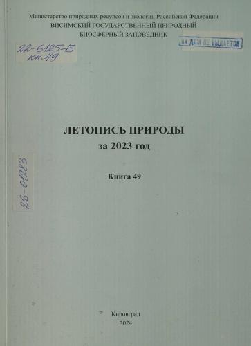 Висимский государственный природный биосферный заповедник, Летопись природы Висимского государственного природного биосферного заповедника за ... . Кн. 49: 2023 год/ Министерство природных ресурсов и экологии Российской Федерации, Висимский государственный природный биосферный заповедник — 2024 г.