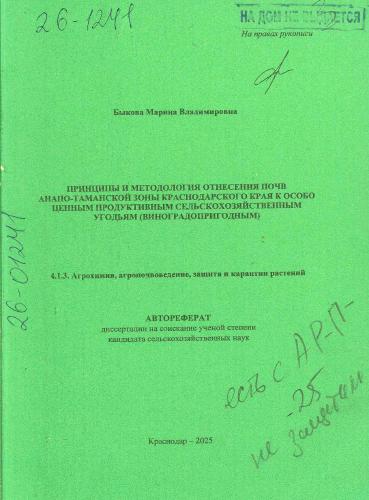 Быкова М. В., Принципы и методология отнесения почв Анапо-Таманской зоны Краснодарского края к особо ценным продуктивным сельскохозяйственным угодьям (виноградопригодным): автореферат диссертации — 2025 г.